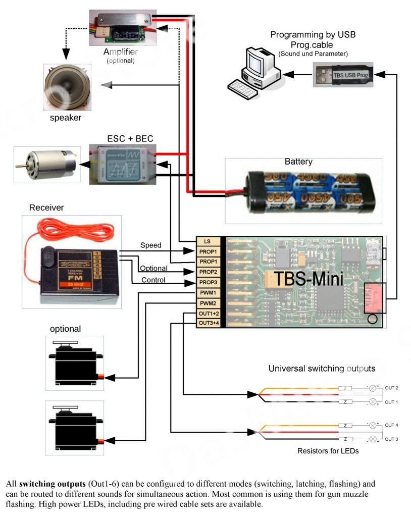 This sound unit is developed for all kinds of RC controlled models, including trucks, crawlers, tanks, airplanes…